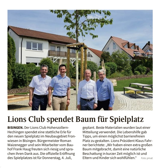 | 06.07.2023 | Lions Club Hohenzollern - Hechingen unterstützt den Angehörigentreff für Angehörige demenzkranker Menschen in Sankt Luzen | Zeitungsbericht | ||||||||||||||||||||||||